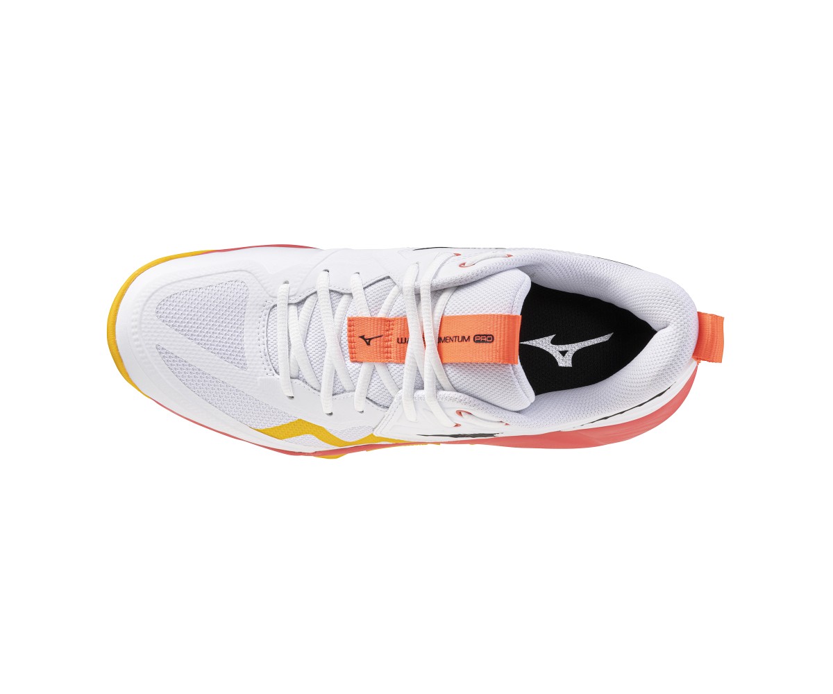 La Mizuno Wave Momentum Pro ofrece una amortiguación reactiva y una estructura lateral sólida, ideal para deportistas que buscan agilidad y seguridad en la pista.