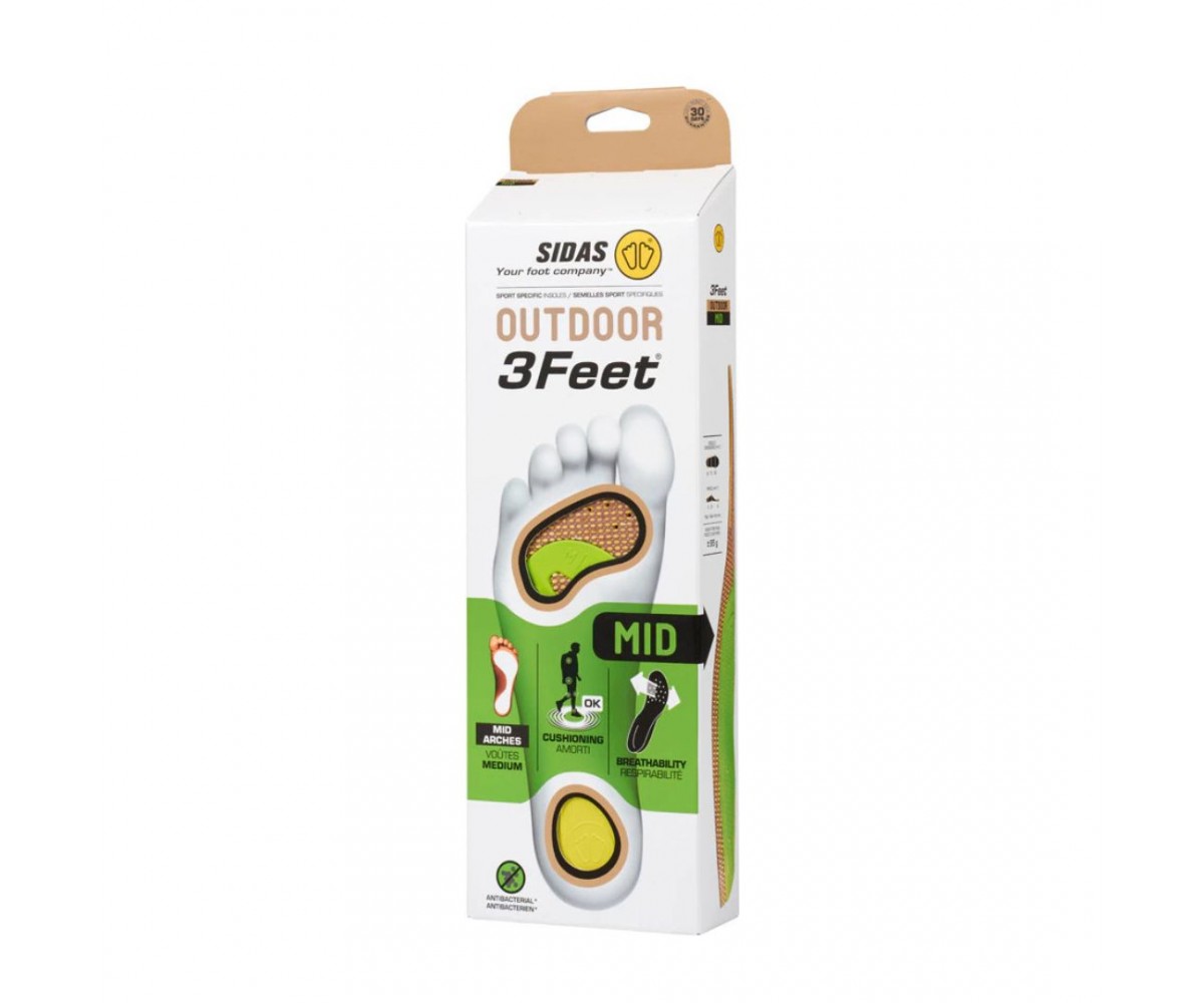 Las plantillas Sidas 3 Feet Outdoor Mid están diseñadas para quienes buscan un soporte fiable y equilibrado en actividades al aire libre. Especialmente indicadas para pies con arco medio, proporcionan una combinación óptima de firmeza y flexibilidad, adaptándose a la pisada natural sin perder estabilidad en terrenos técnicos.